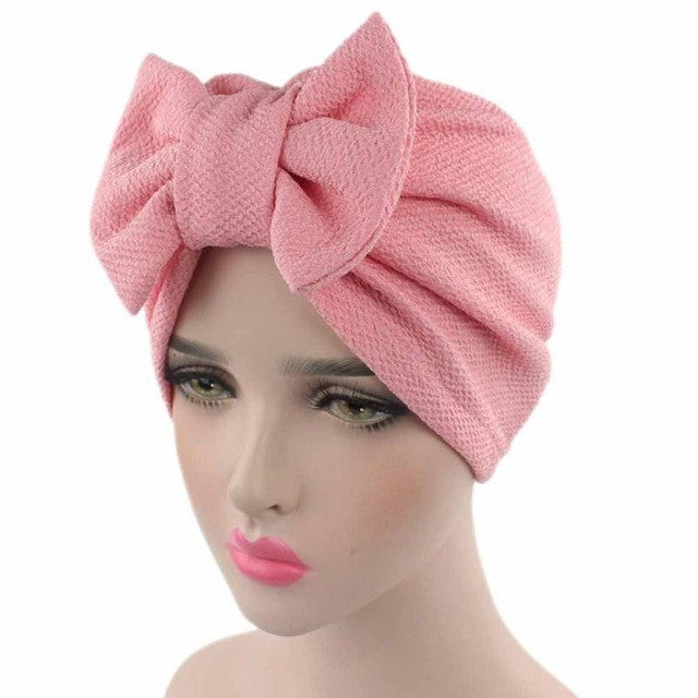 Solid Knitted hat Women Bow Hat Beanie Scarf Turban Head Wrap Cap For bandana bowknot Wrap hat Cap